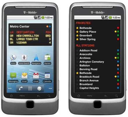 Immediately I realized that Greenbelt is in a relatively rare situation amongst it metro station peers: it is at the end of a line, and all trains go in a single direction. A more practical widget solution would need to account for stations with trains going in multiple directions — and possibly, on multiple metro lines (i.e., green, red, etc). For design & layout, I found easy inspiration in the great UI work done by David Desandro and Ian Storm for their recent Next Metro app built for the 10kApart contest.