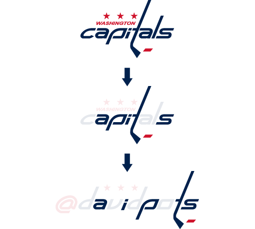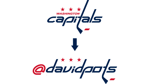While on a recent plane ride, I embarked on a self-imposed quickfire challenge to use Adobe Illustrator to design the text “@davidpots” (my Twitter username) in the style of the Washington Capitals logo. I was armed with only 45 minutes and a vector version of the Capitals logo; no internet connection would be at hand for additional assets (such as fonts, etc).