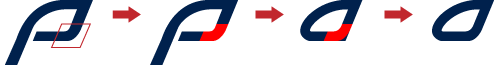 The exact same approach was used to create the “o”. Starting with the already-existant “p”, (1) the shape is divided, as to get rid of the unnecessary bottom stem. (2) Next, the remaining “corner” is duplicated & rotated 180 degrees. (3) Finally, the two remaining pieces are moved into place to form the “o”. Voila!
