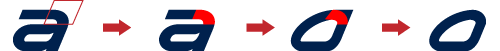 Rounding the Corners, Part 2 The previous “round the corner” approach was used one more time for the upper-right corner of the shape. This time I used an existing corner from the “a” to make it happen. Same basic steps: