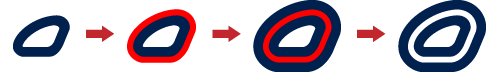 Creating the Outer Wrapper In order to create an outter wrapper for the “@”, I decided to use the object’s stroke. This would ensure the curves remained consistent in both contour and width. To make this happen, I first (1) gave an exterior stroke to my original object. Next, (2) an additional stroke of then wrapped around the shape again. Finally, (3) after expanding the strokes into proper shapes (Object > Expand), I used the Pathfinder’s divide tool to get rid of the undesired middle “red” section.
